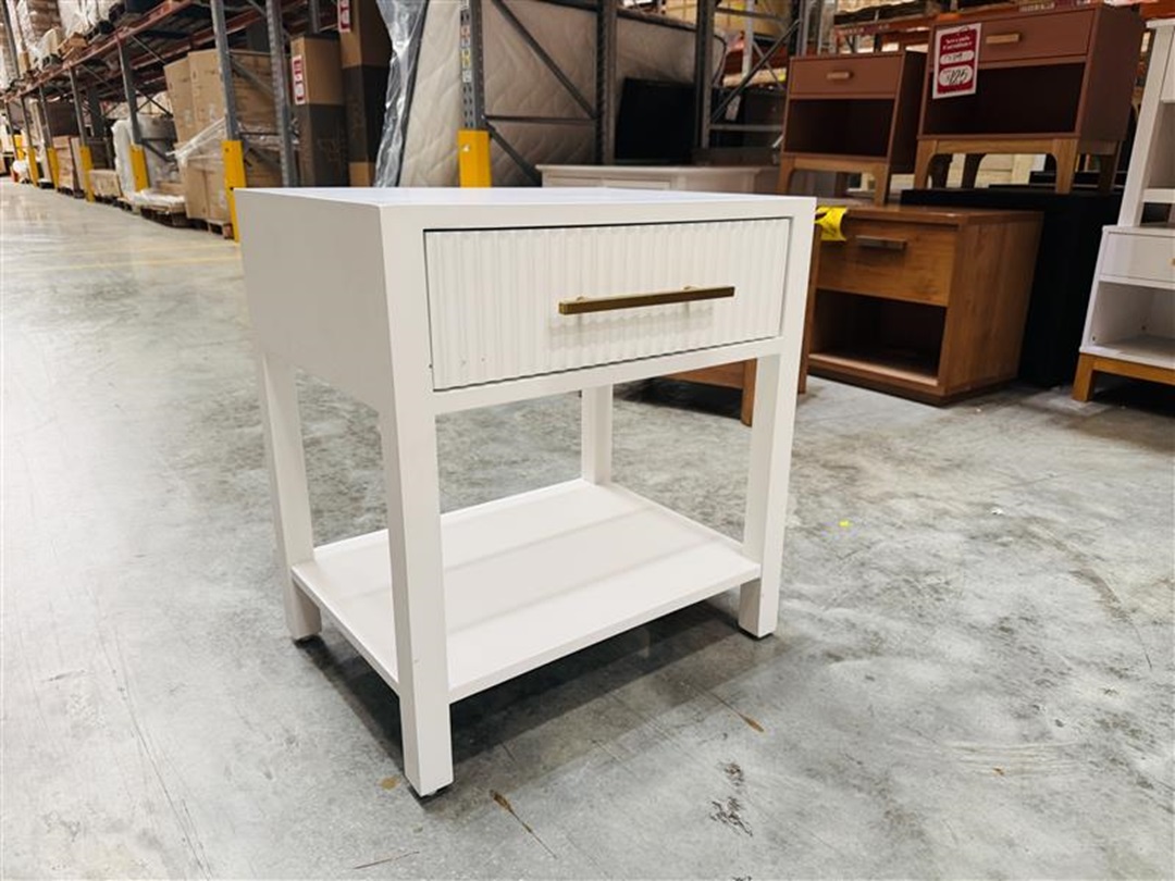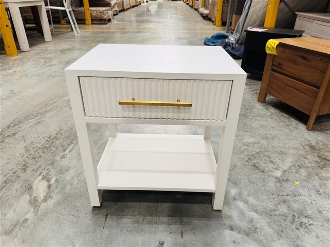 Large 1 Drawer White Bedside with Gold handle