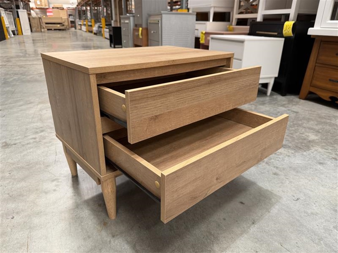 Crafted from solid natural timber, this bedside table features two smooth drawers for convenient storage. Its warm wood grain adds a touch of organic elegance to any bedroom. A perfect blend of functionality and timeless style.