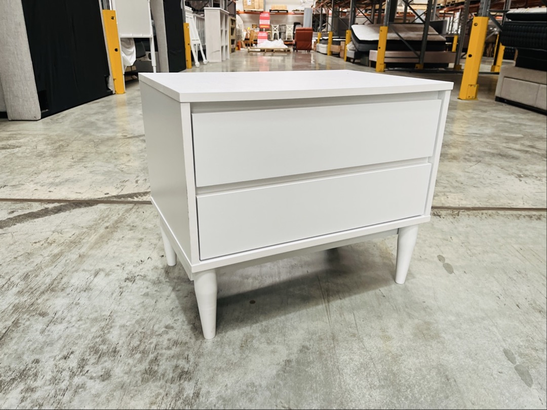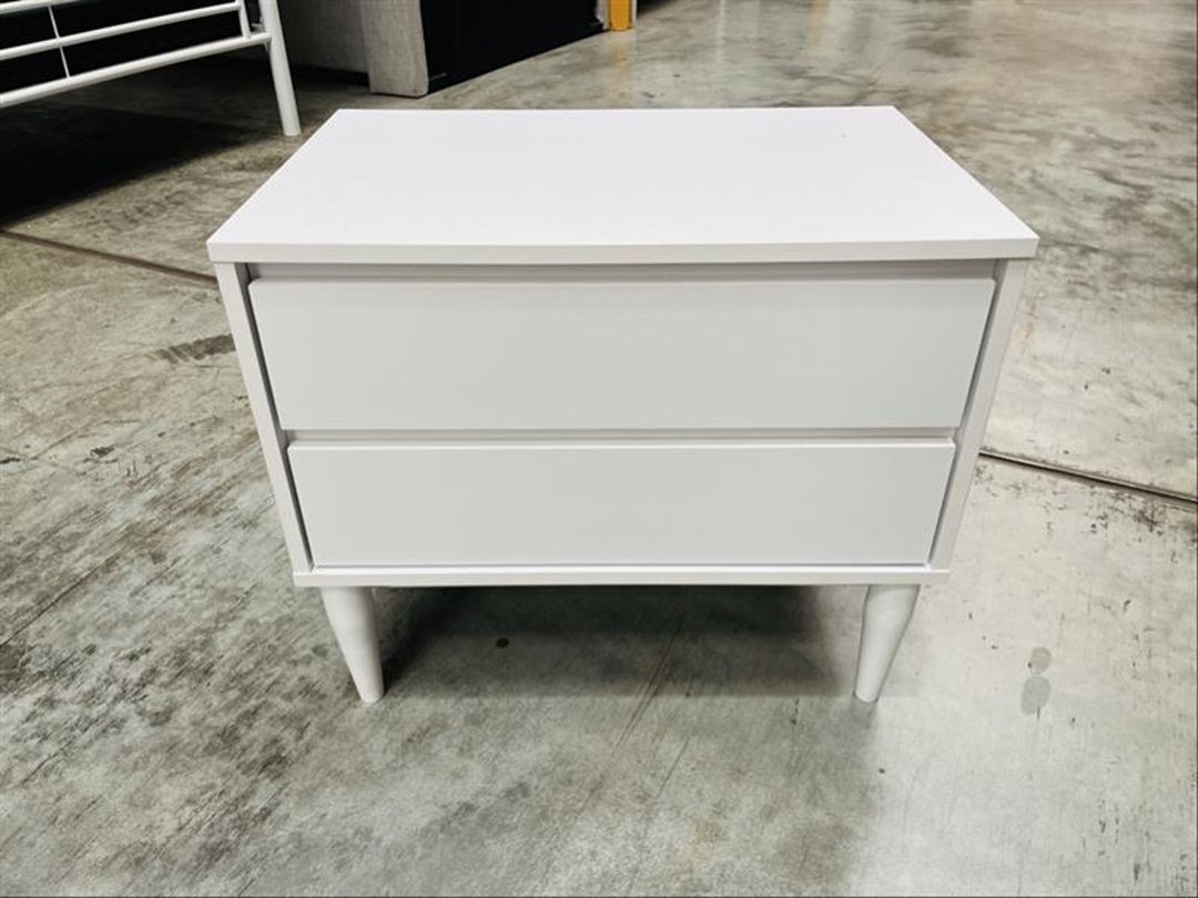 A sleek and practical bedside crafted from durable white timber. Features two smooth-gliding drawers for convenient storage. Perfect for adding a clean, fresh look to any bedroom.