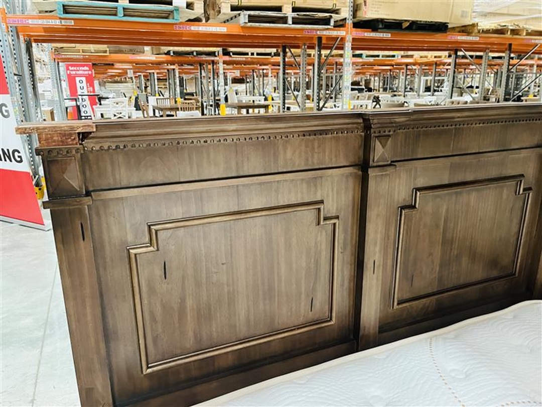 This elegant queen bed features a rich chocolate brown finish for a warm, contemporary look. The package includes a comfortable mattress for added convenience. A perfect blend of comfort, style, and practicality for modern bedrooms.