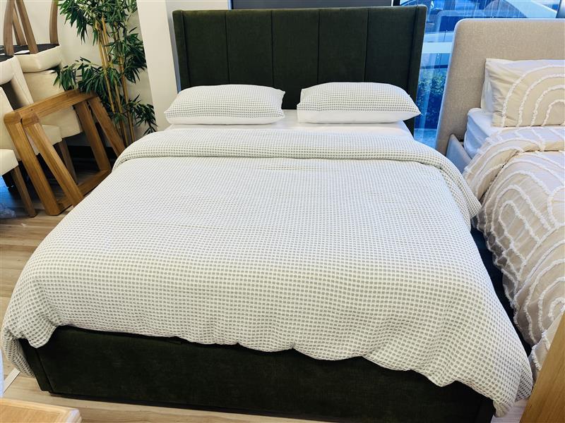 Upholstered in a rich forest green fabric, this bed combines modern style with hidden functionality. The gaslift design provides generous under-bed storage, perfect for keeping your space neat and organised, while the sturdy frame ensures lasting comfort and support.
