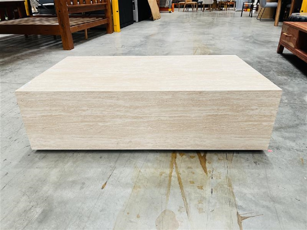 With a sophisticated beige stone-look finish, this coffee table adds a modern, minimalist flair to any living space. Its sturdy design provides both style and practicality for your living room.