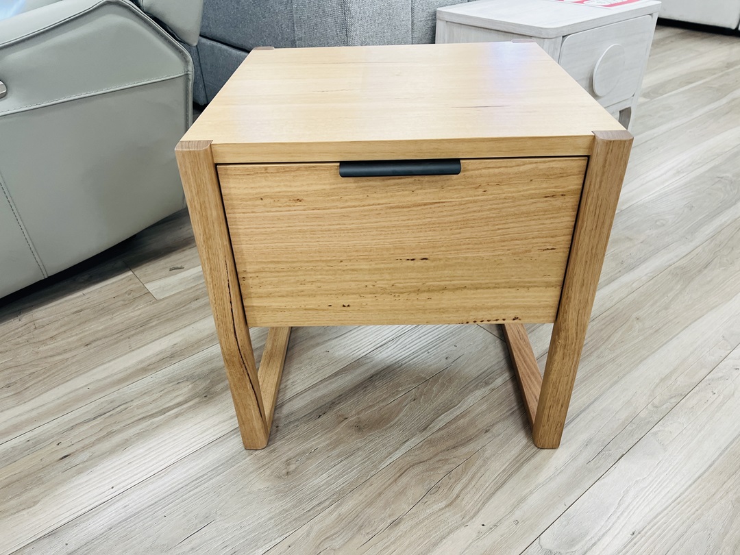 Compact and practical, this side table features a single drawer for essentials. Crafted from natural timber, it highlights a warm, organic look. Ideal for use beside the bed or as an accent piece in living spaces.