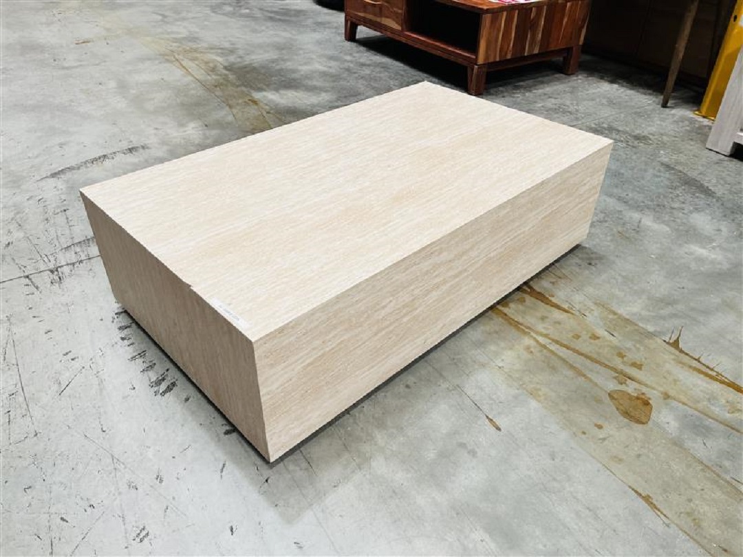 With a sophisticated beige stone-look finish, this coffee table adds a modern, minimalist flair to any living space. Its sturdy design provides both style and practicality for your living room.