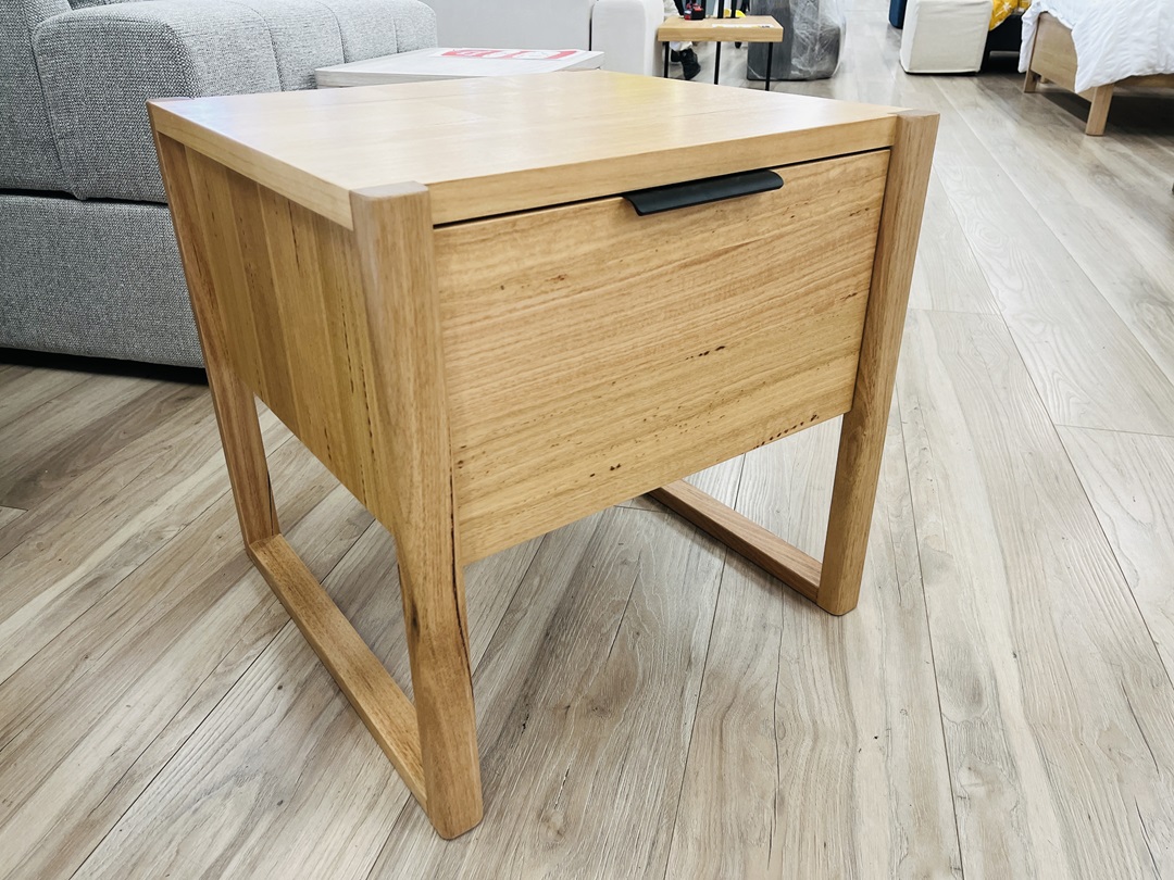 Compact and practical, this side table features a single drawer for essentials. Crafted from natural timber, it highlights a warm, organic look. Ideal for use beside the bed or as an accent piece in living spaces.