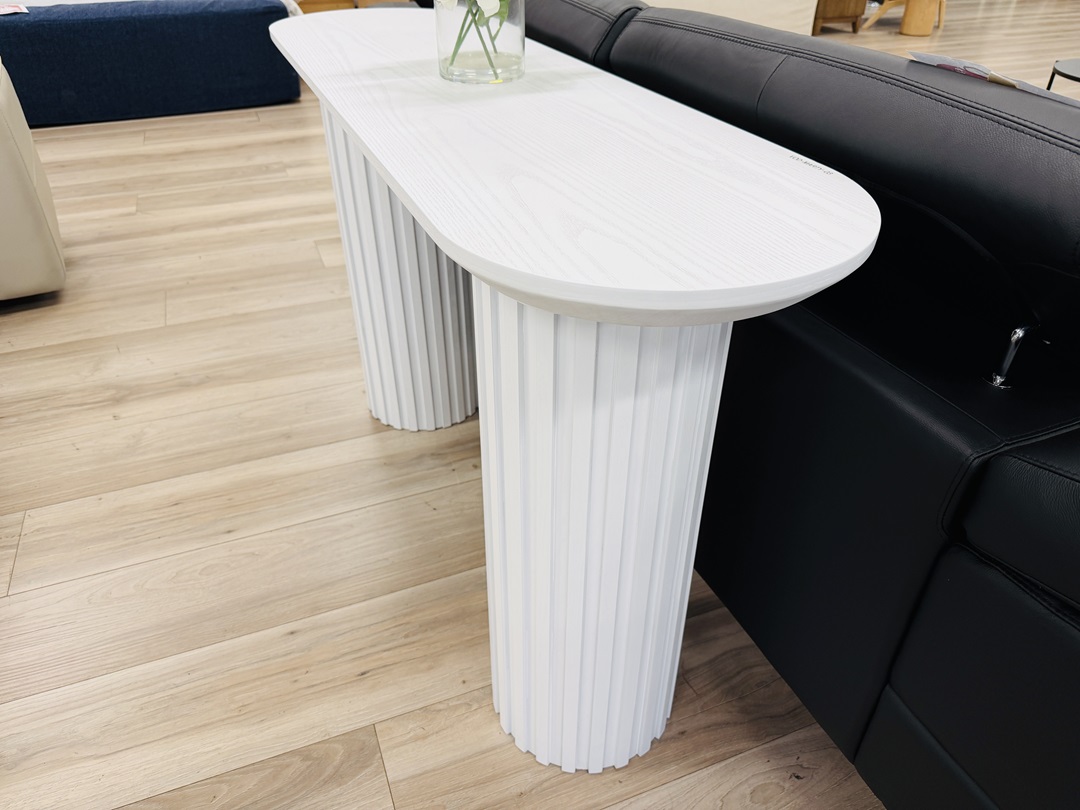 This 140cm console table features a smooth white timber finish that brightens hallways and living spaces. Its generous length provides ample surface area for decorative accents, lamps, or everyday essentials, while its simple lines allow it to suit both modern and classic interiors.