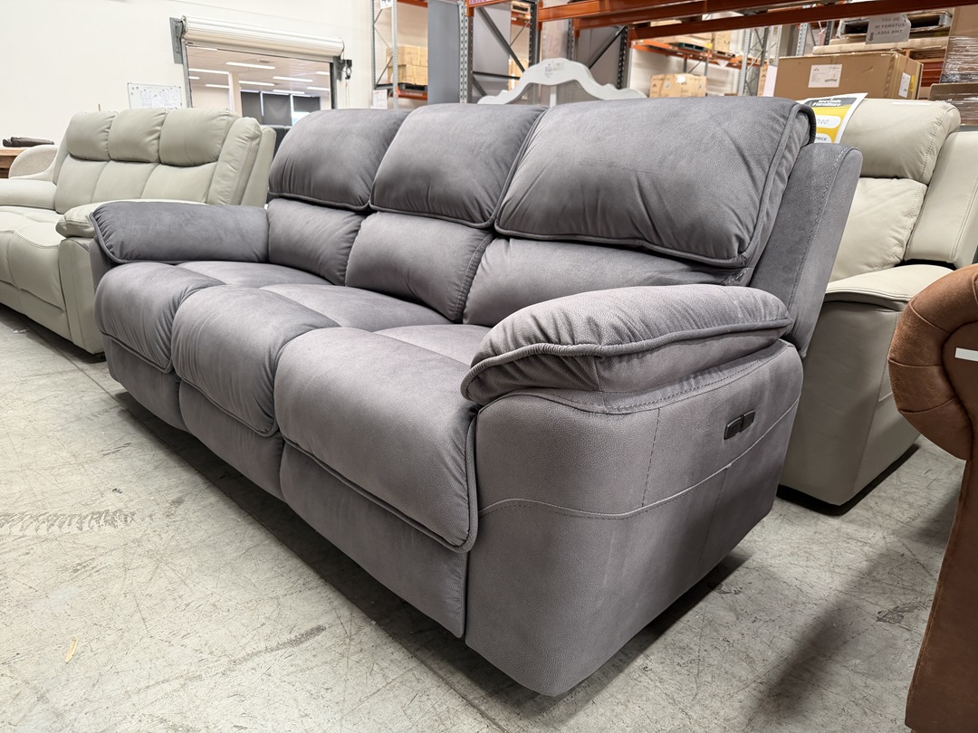 A modern 3-seater sofa upholstered in charcoal grey fabric featuring smooth electric recliners that deliver superior comfort and stylish support for everyday living.