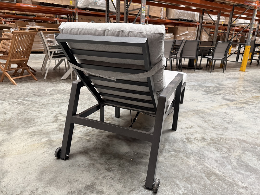 Relax in style with this sleek charcoal grey sun lounger. Designed for comfort with an adjustable backrest and weather-resistant frame. Perfect for poolside or patio leisure.