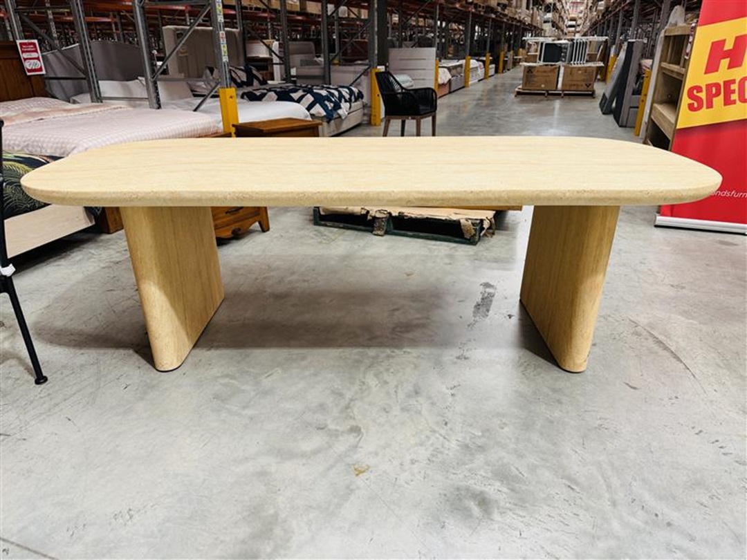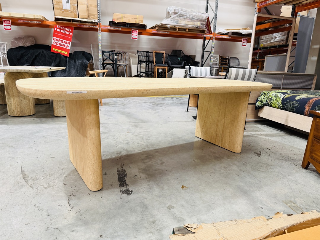 A premium outdoor dining table crafted with a travertine-style surface, measuring 240cm for generous seating space. Durable and stylish, ideal for outdoor entertaining and modern alfresco areas.