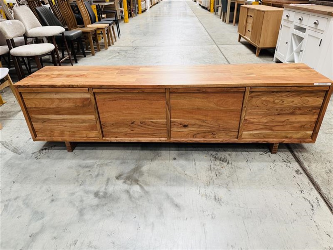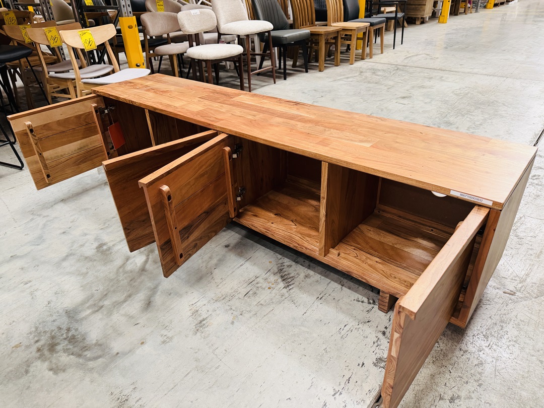 A classic cherrywood TV unit with four doors, providing ample concealed storage while adding richness and warmth to your living area.