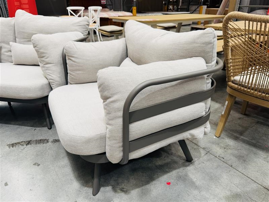 A contemporary outdoor lounge solution with natural textures and a neutral sand tone, perfect for relaxed entertaining.