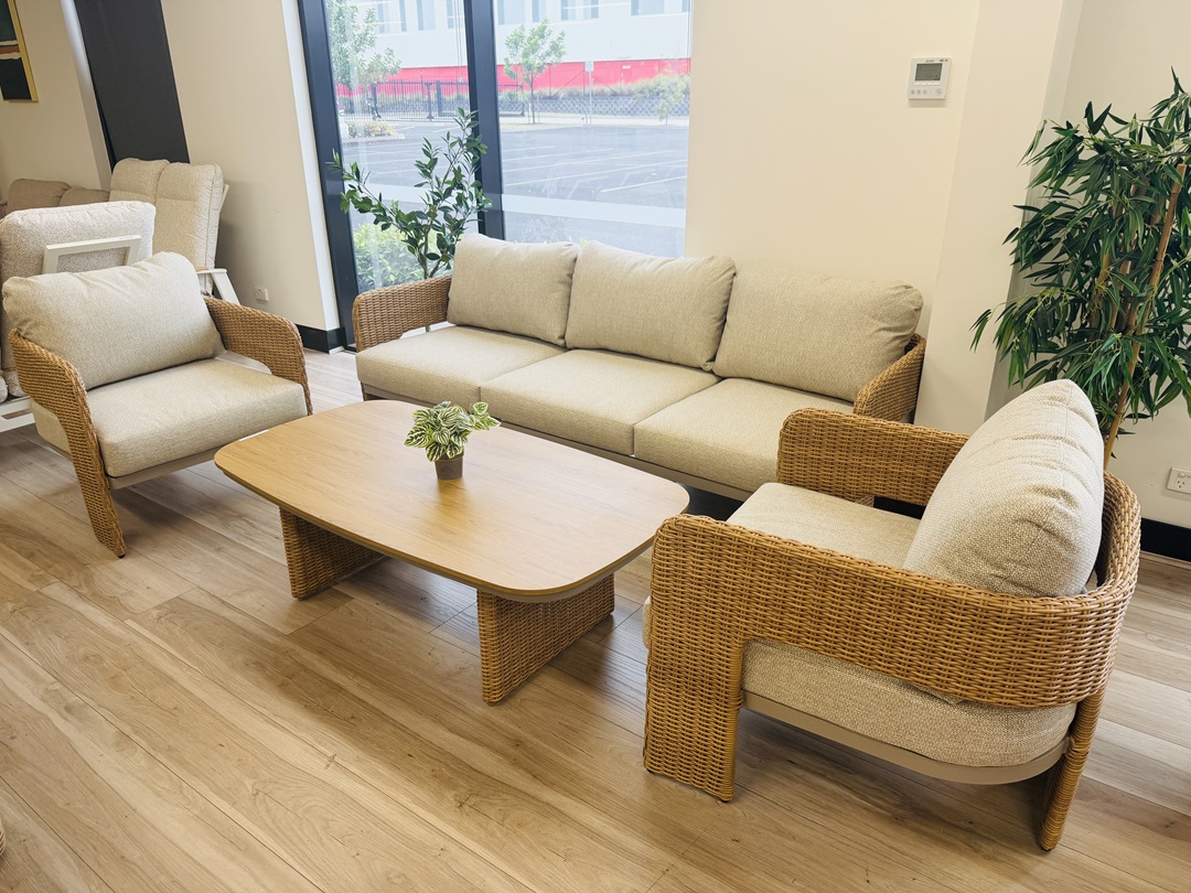 The Alu & Wicker 4pc Outdoor Sofa Setting offers comfortable, relaxed seating with a modern mix of aluminium frames and wicker accents. Perfect for outdoor living areas, it combines durability with a warm, inviting design.