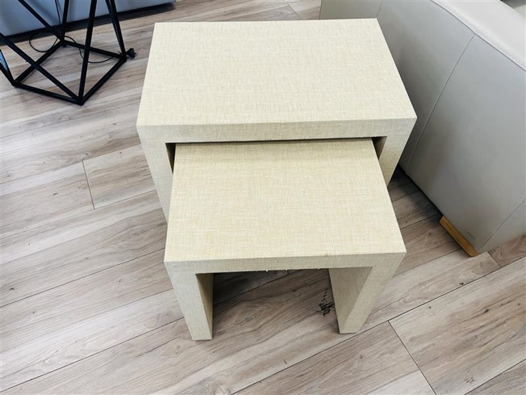 This elegant 2-piece nesting table set in beige offers versatility and style. The compact design allows easy storage when not in use. Perfect for modern living spaces or as side tables for entertaining.