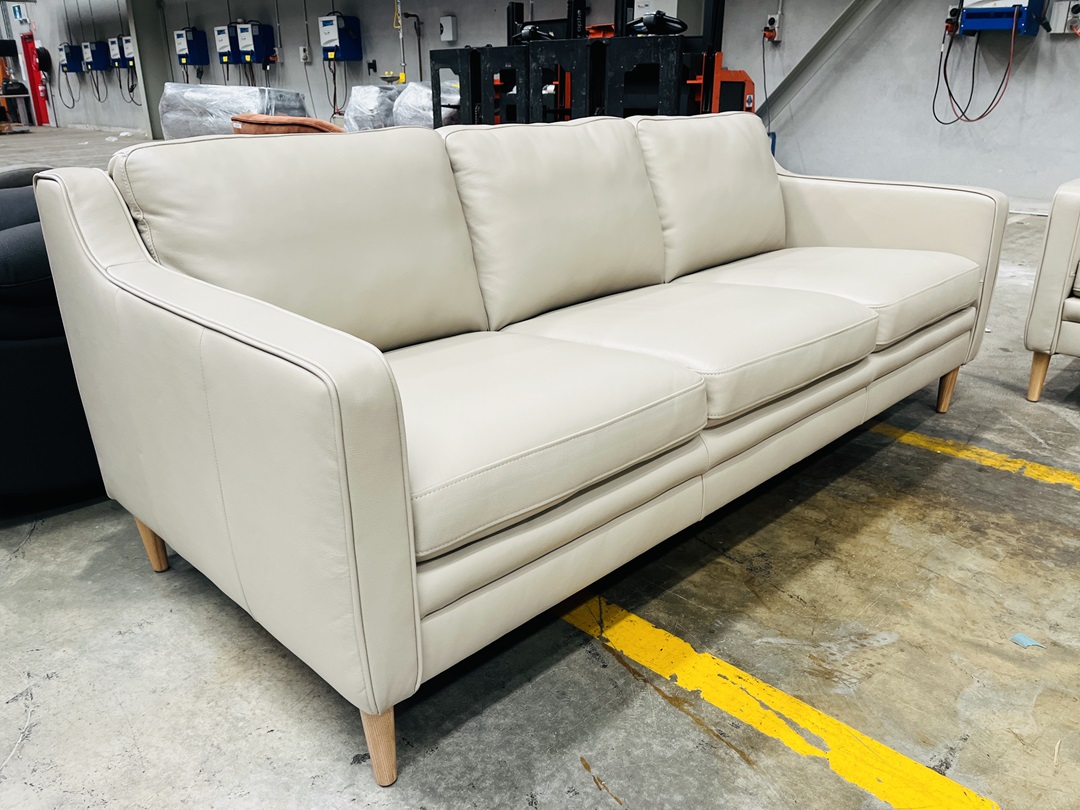 This set includes a 3-seater and 2-seater sofa upholstered in beige leather. The neutral tones bring elegance while ensuring comfort and durability. Ideal for both modern and classic interiors.