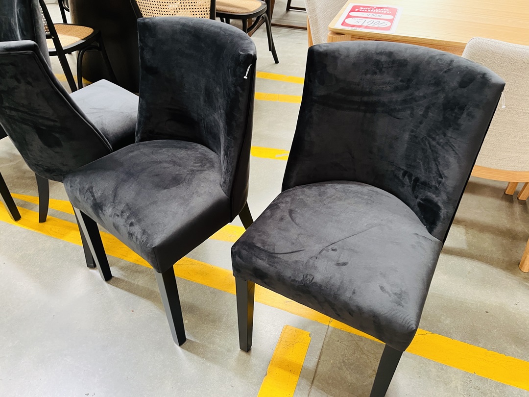 Sophisticated and chic, this dining chair is upholstered in plush black velvet. The elegant ring handle on the backrest adds a refined touch. A perfect blend of comfort and luxury for formal dining.