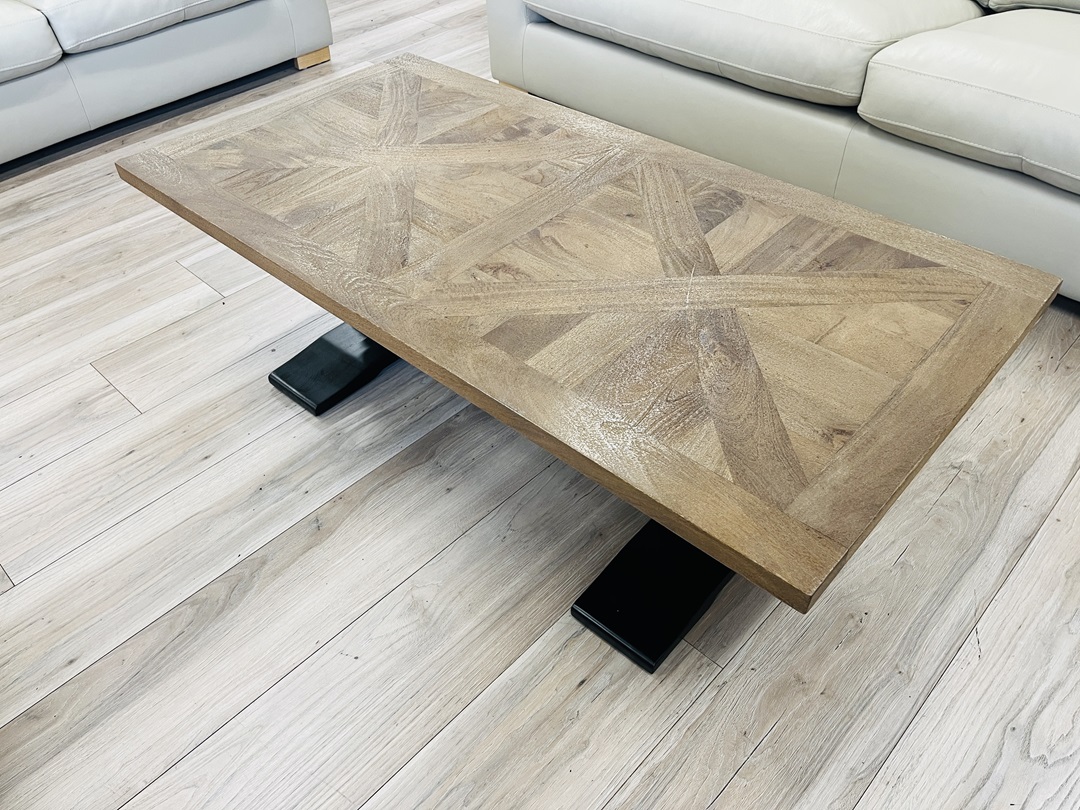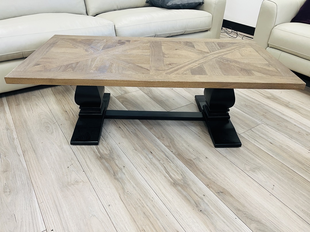 A stunning centerpiece combining rich walnut timber with a bold black finish. The pedestal leg design adds a sculptural element while maintaining stability. Ideal for adding sophistication to any living room décor.
