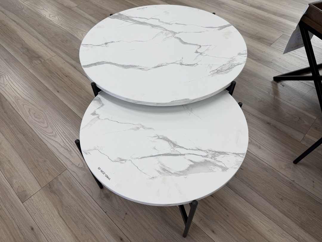 A modern two-piece coffee table set in contrasting black and white finishes that offers versatile styling and practical surface space for contemporary living areas.