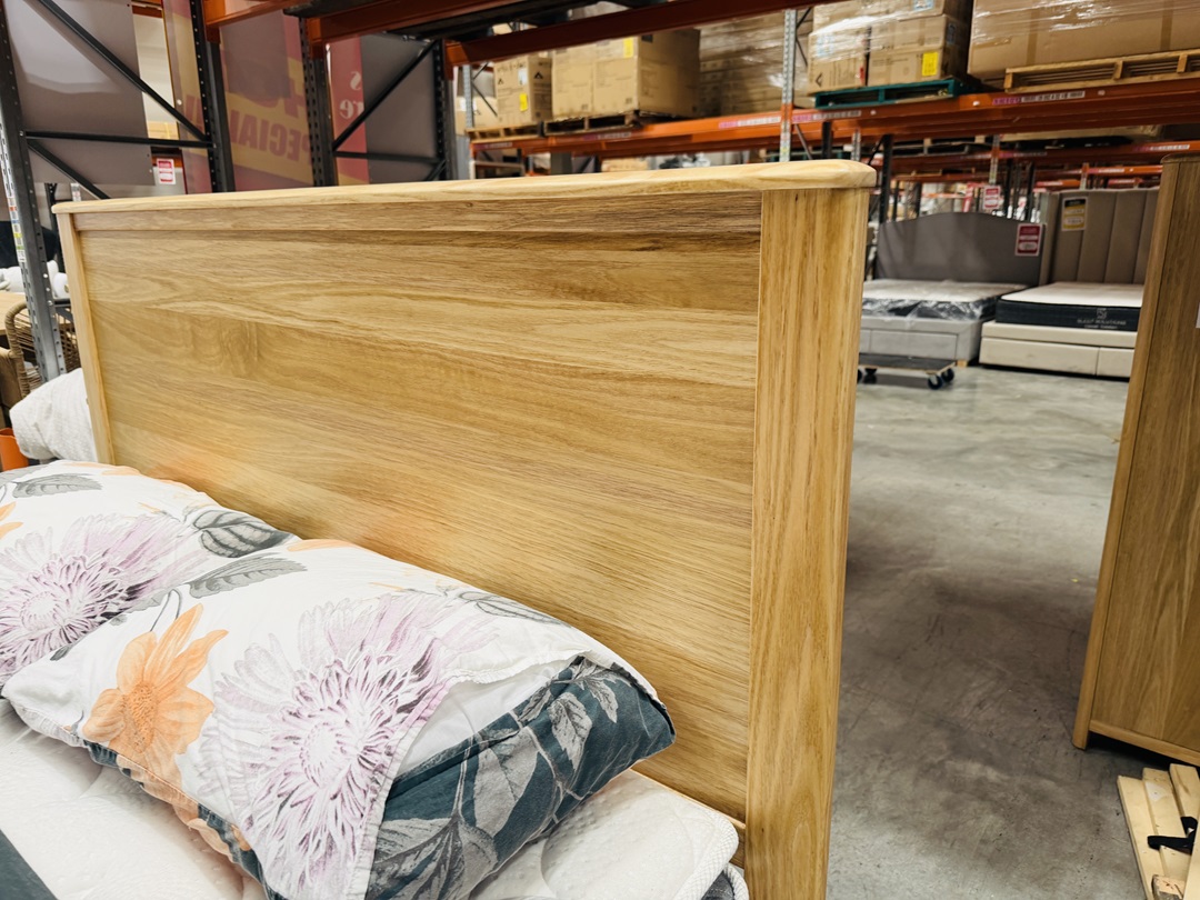 The Blonde Timber Queen Bed showcases a clean, natural timber finish with a strong frame, bringing warmth and a timeless look to your bedroom while offering reliable support.