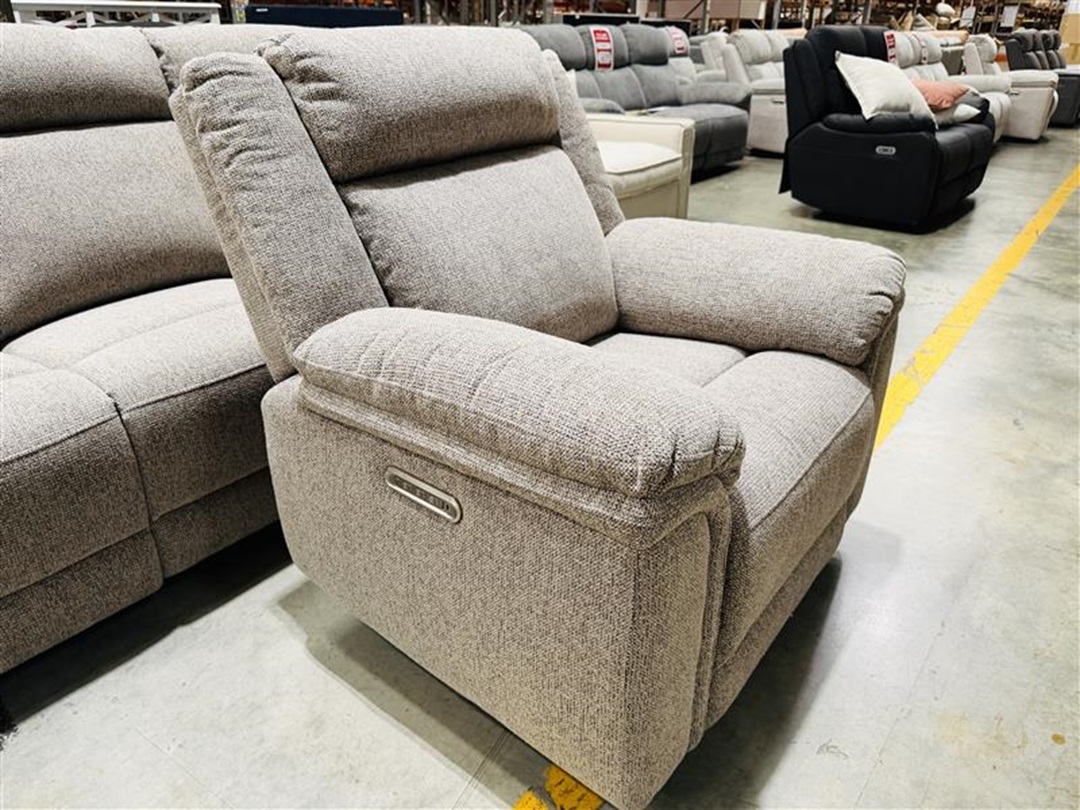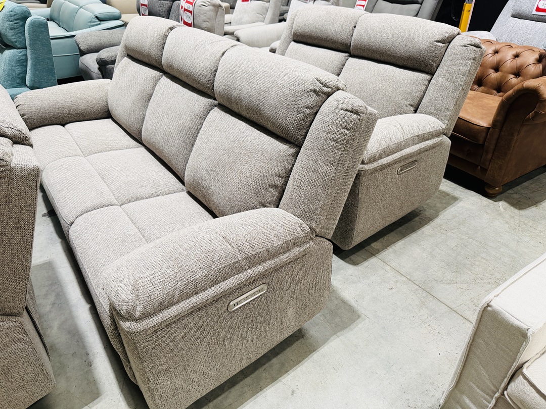 Upholstered in soft grey fabric, this 2-seater sofa includes electric recliners for effortless comfort. Ideal for smaller living spaces, it offers plush seating and modern convenience at the touch of a button.