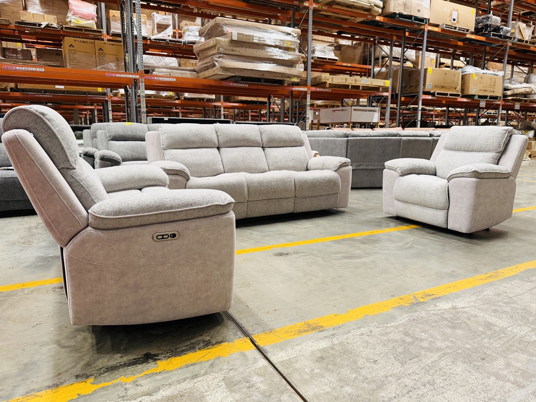 A complete 3+2+1 lounge suite upholstered in comfortable brown fabric. Each piece features smooth electric reclining for personalized relaxation, combining comfort with modern convenience.