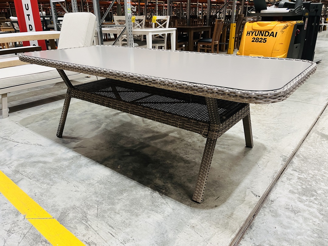 Designed for outdoor living, this dining table features a sturdy brown wicker base and a tempered glass top. Weather-resistant and easy to maintain, it’s ideal for patios and gardens. Perfect for alfresco dining and relaxation.