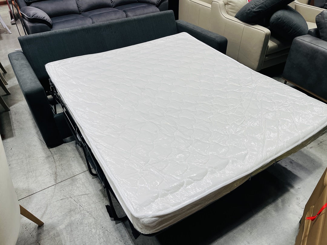 This multifunctional charcoal fabric sofa easily converts into a comfortable pull-out bed. Ideal for guests or compact living spaces. Soft upholstery and sturdy construction ensure everyday comfort.
