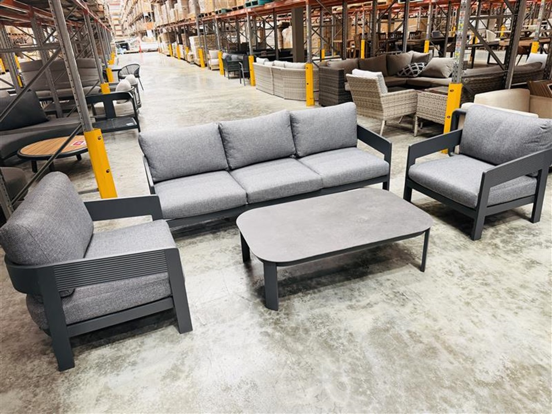 The Charcoal Grey Outdoor 4pc Sofa Set delivers a bold, modern outdoor look with sturdy construction and comfortable seating, ideal for entertaining or everyday relaxation.