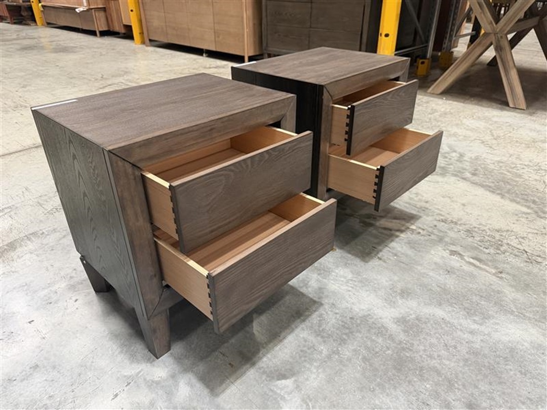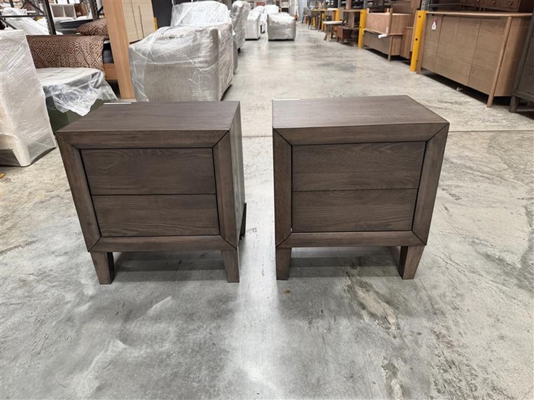 A rich chocolate brown timber bedside featuring two smooth drawers that provide practical storage and add a warm, elegant touch to any bedroom.