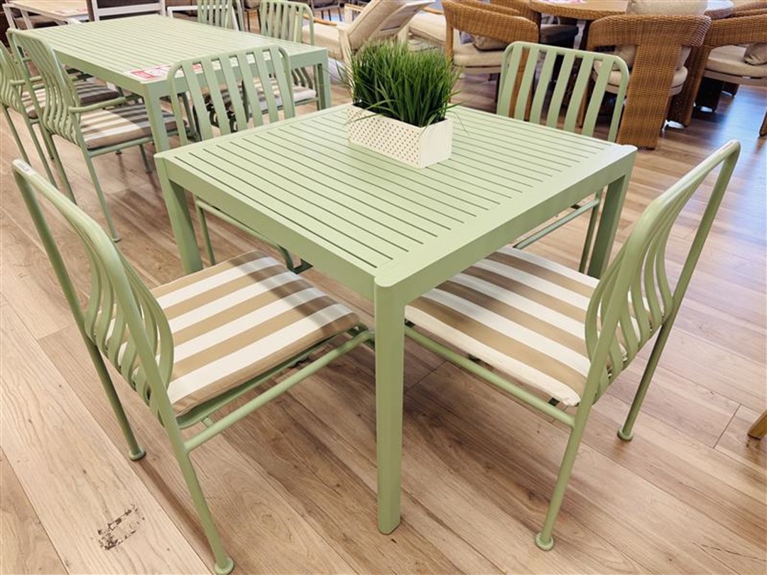 A stylish 5-piece outdoor dining set featuring a natural timber table paired with matching chairs. Its durable construction and classic design make it perfect for alfresco dining and entertaining.