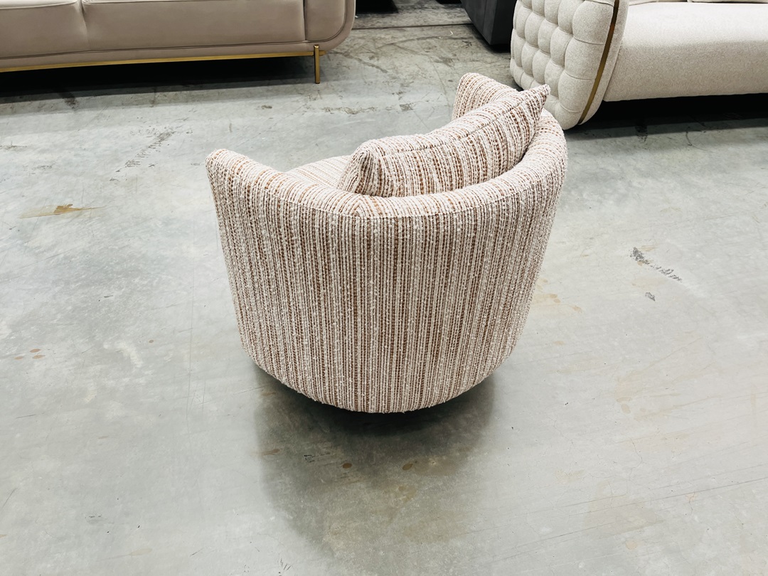 A stylish swivel chair featuring a dual-tone fabric in cream and burnt orange. Offers 360° rotation and plush cushioning for modern living comfort.