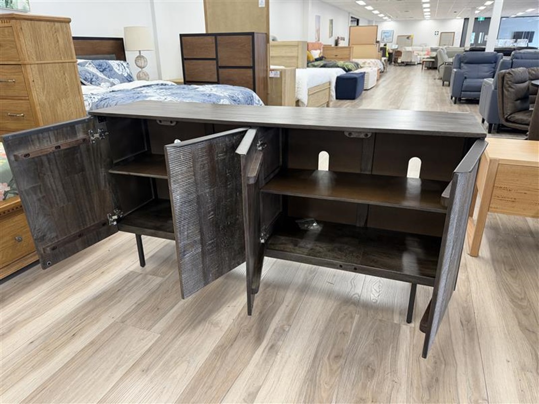 A spacious buffet finished in a rich dark brown wash. Includes four doors providing generous internal storage, perfect for dining or living areas seeking a warm timber aesthetic.