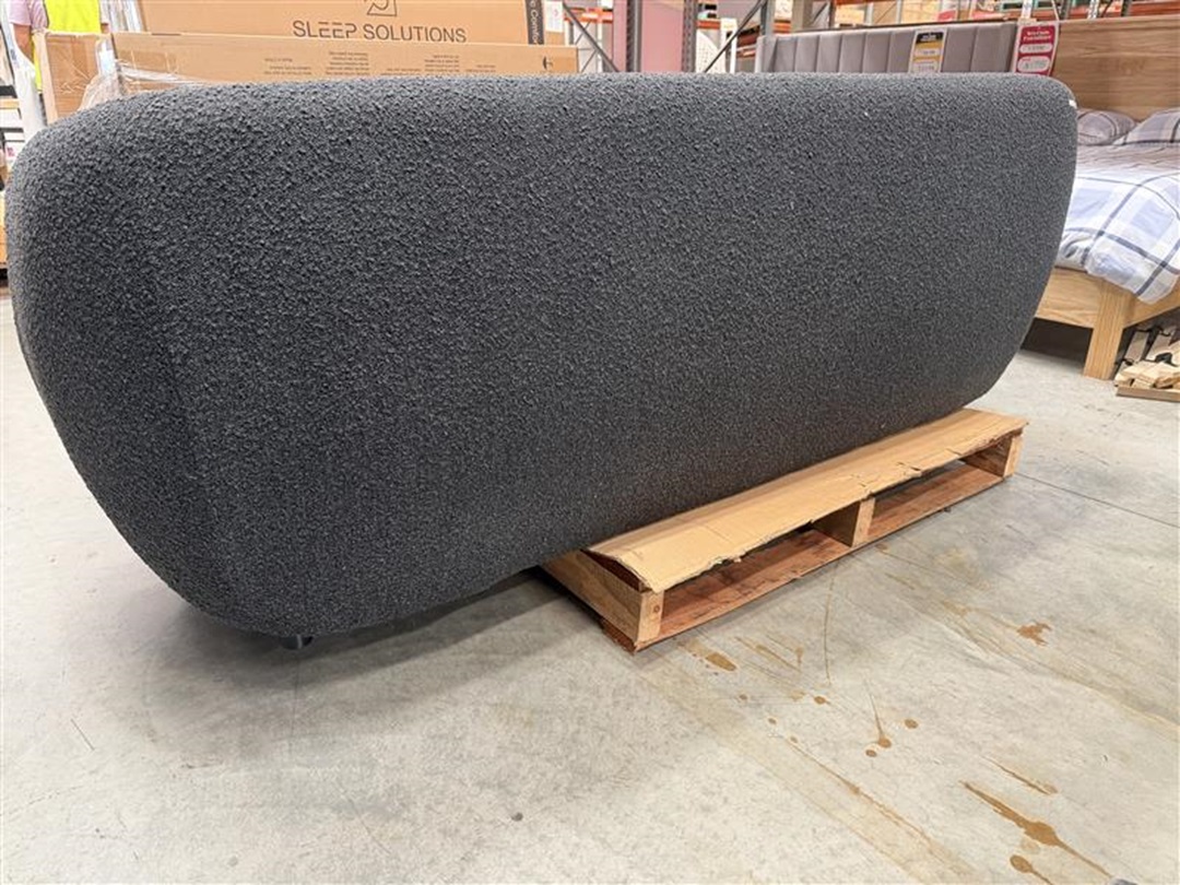 A spacious 3-seater sofa upholstered in premium dark grey boucle fabric. Features a modern minimalist design with comfy cushioning for stylish everyday lounging.