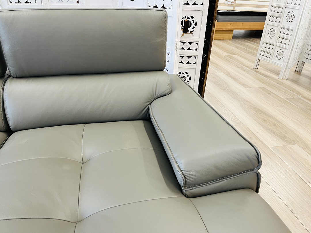 This elegant lounge suite includes a beige leather 2 seater with dual electric recliners and two matching single electric recliners, delivering both comfort and refined style.