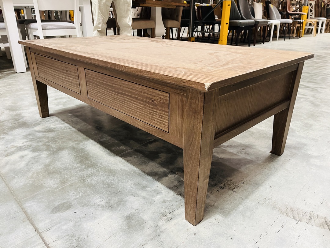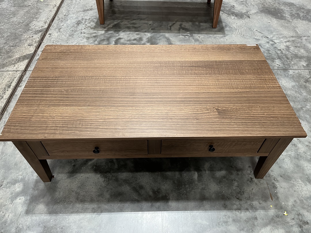 Elegant and sturdy, this coffee table features a dark oak timber finish with two spacious drawers. Its classic design complements both traditional and modern interiors. Ideal for keeping your living space organized.