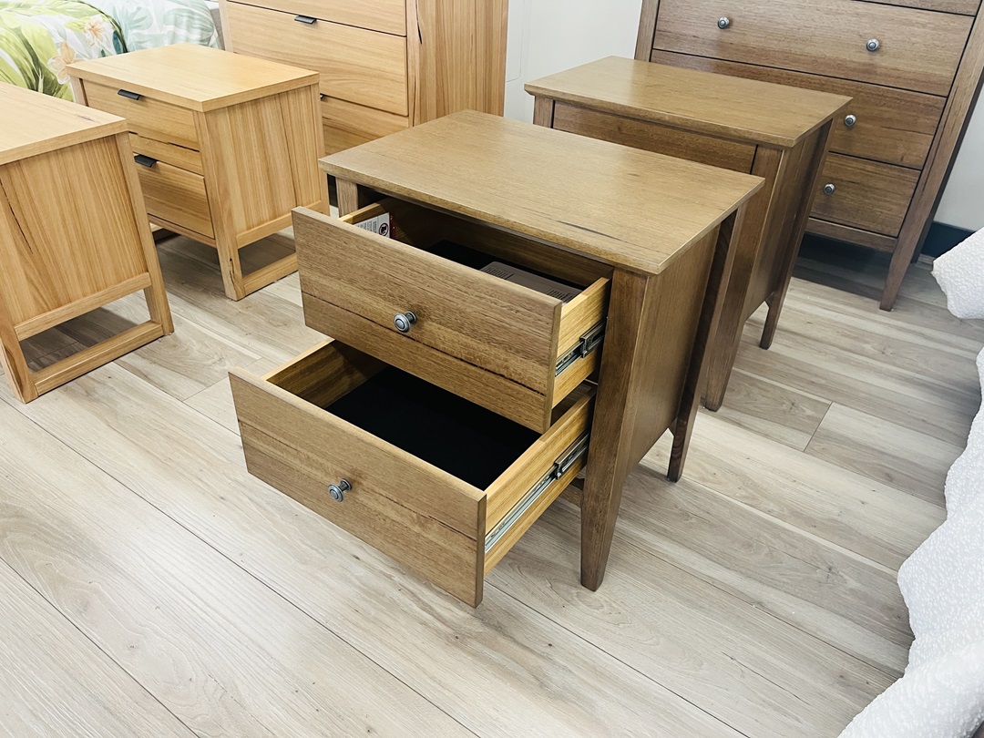 Enhance your bedroom with the Brushed Smoke 2 Drawer Timber Bedside, combining sleek storage with a stylish smoky wood finish.