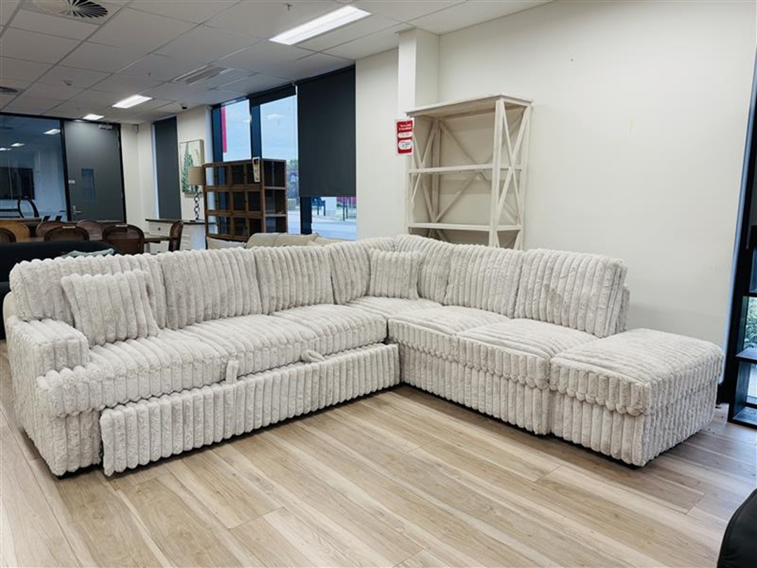 The Beige Fabric Corner Lounge offers generous seating with soft upholstery and supportive cushions, creating a relaxed and inviting centrepiece for living areas.