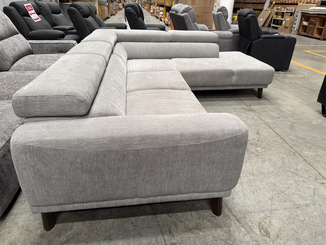 A spacious corner sofa upholstered in soft grey fabric to suit any interior style. Designed with deep seating for exceptional comfort and everyday use. Ideal for families and large living rooms.