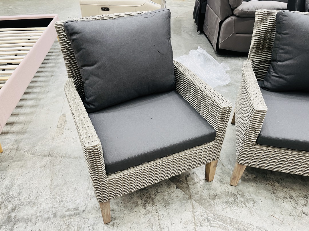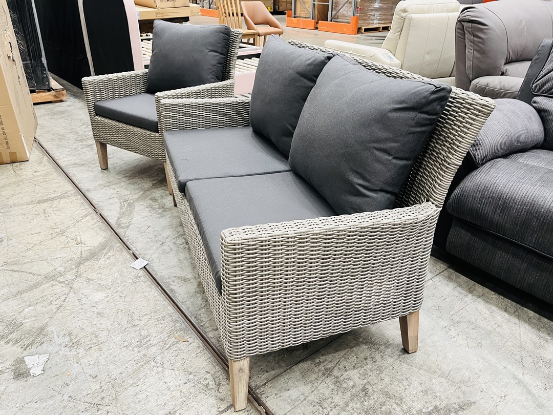 Designed for outdoor comfort, this set includes a 2-seater sofa and two matching armchairs. Made with durable grey wicker, it’s both weather-resistant and stylish. Ideal for patios, decks, or garden seating areas.