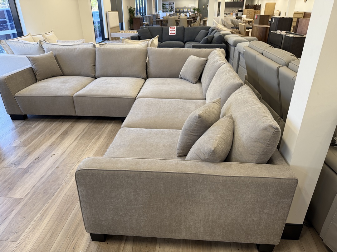 This stylish corner lounge features soft light-brown upholstery with deep cushioning for premium comfort. Its warm tone adds a cozy, inviting feel to any space. Ideal for relaxed living and family gatherings.