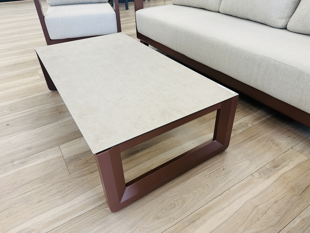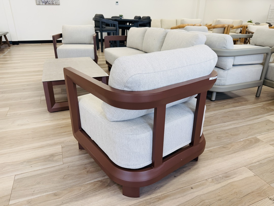 The Maroon Aluminium Outdoor 4pc Sofa Set features a durable aluminium frame in a rich maroon finish, offering a modern outdoor seating set that is lightweight, weather-resistant, and stylish.