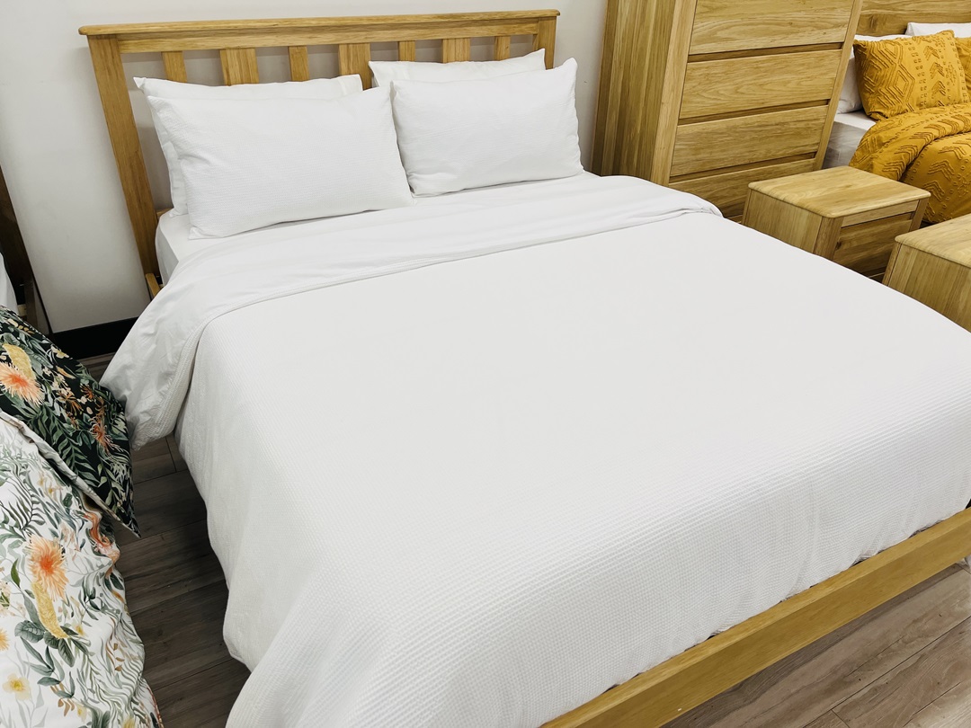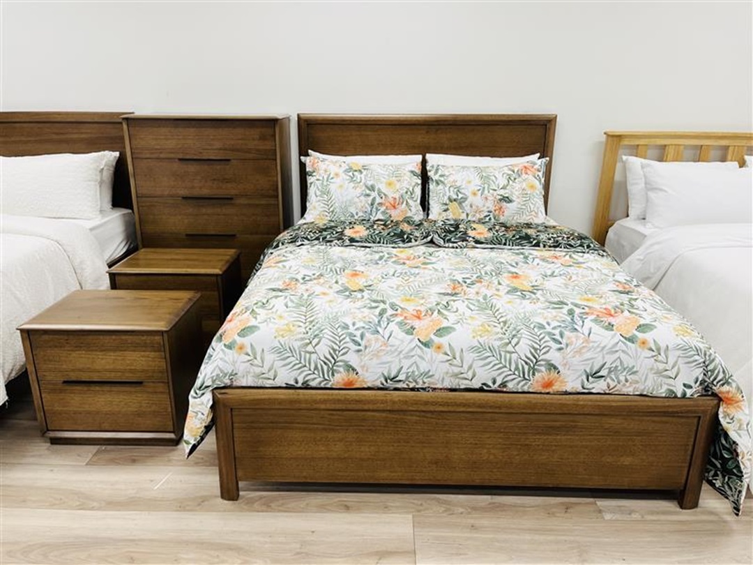 This queen bed showcases the beauty of mountain ash timber with its natural grain and smooth finish. Strong and stylish, it complements both modern and classic décor. A perfect centerpiece for a warm, inviting bedroom.