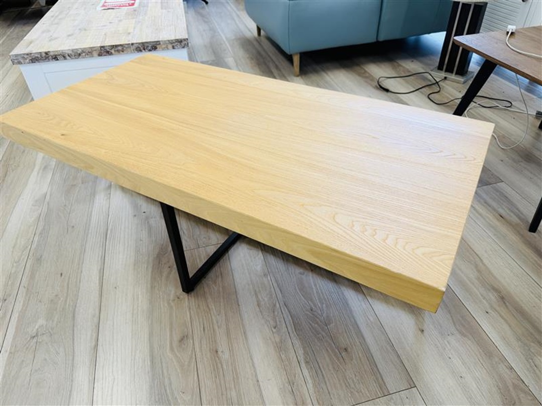This coffee table combines a warm natural timber top with strong black metal legs for a modern industrial look. Durable and stylish, it provides a practical surface for everyday use while acting as a striking centrepiece in your living area.