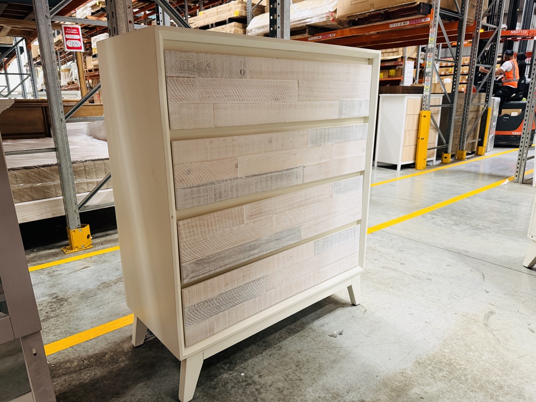 A high-quality timber tallboy with five spacious drawers, offering both durability and ample storage. Its elegant timber finish enhances any bedroom setting.