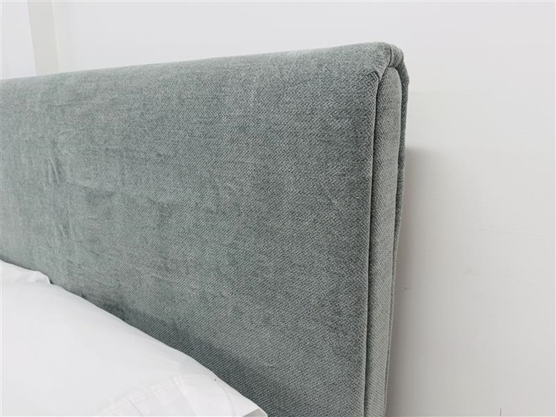 A refreshing sea-green fabric queen bed that brings a touch of colour and calm to your space, combining plush upholstery with a strong frame for lasting comfort.