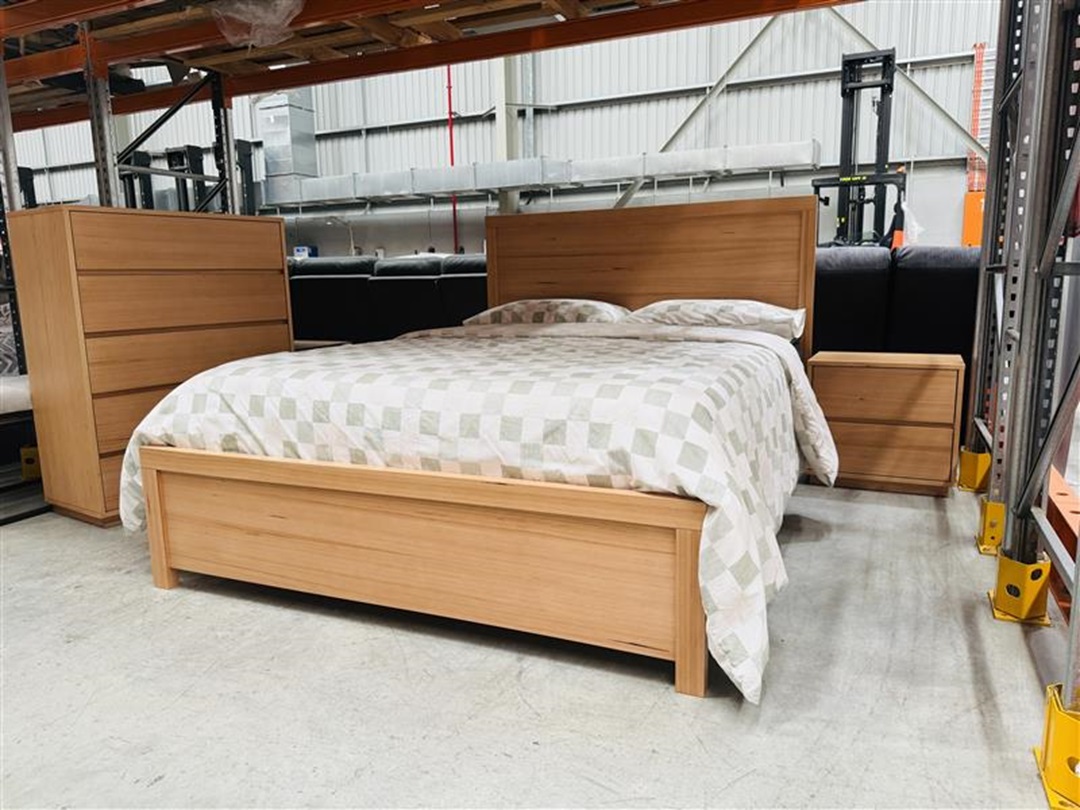 A high-quality timber tallboy with five spacious drawers, offering both durability and ample storage. Its elegant timber finish enhances any bedroom setting.