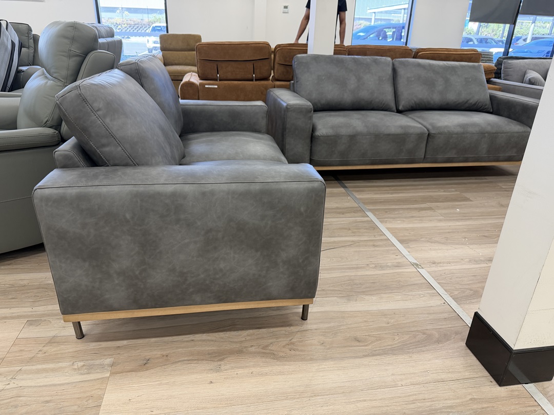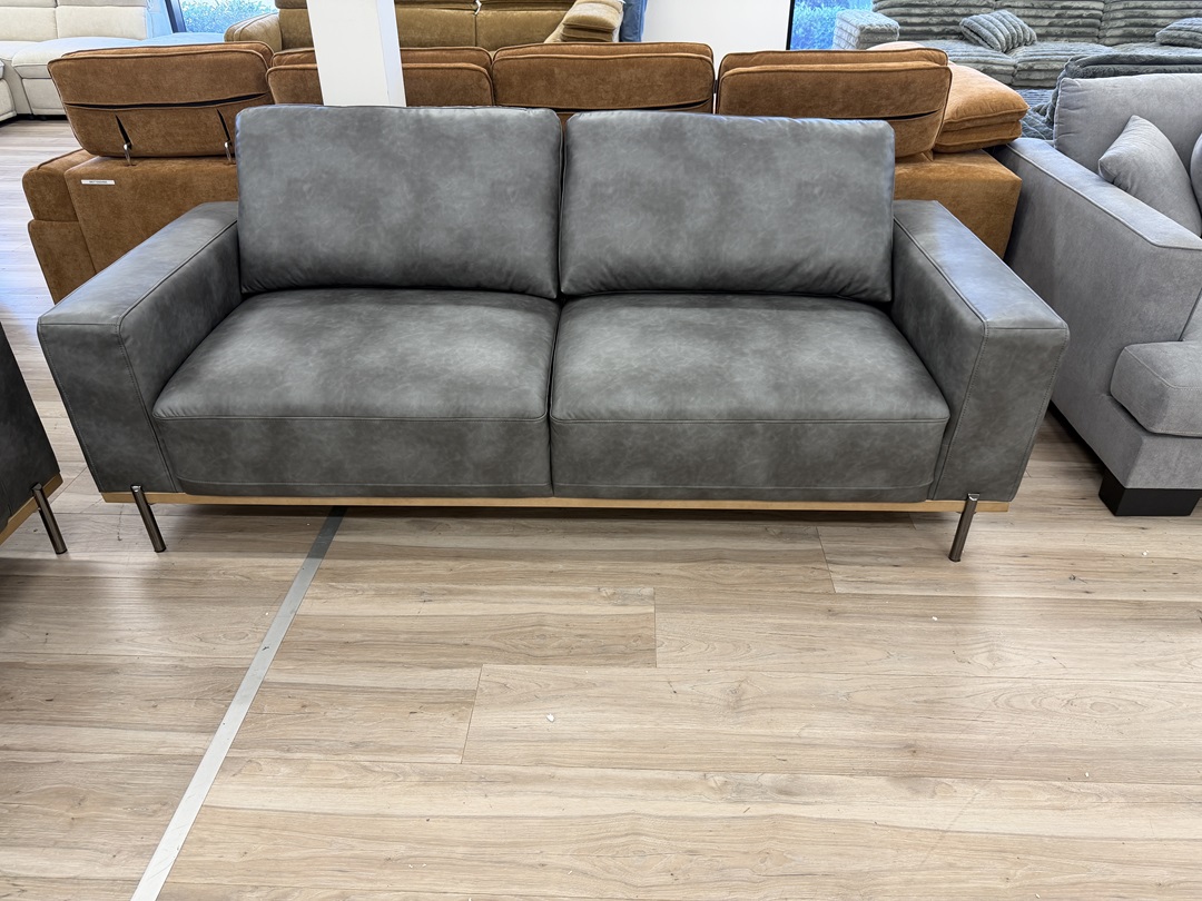A compact yet luxurious 2 seater sofa in ash grey fabric, featuring an electric extendable footrest and a matching chaise. Designed for modern comfort and relaxation, it offers the perfect blend of function and style.