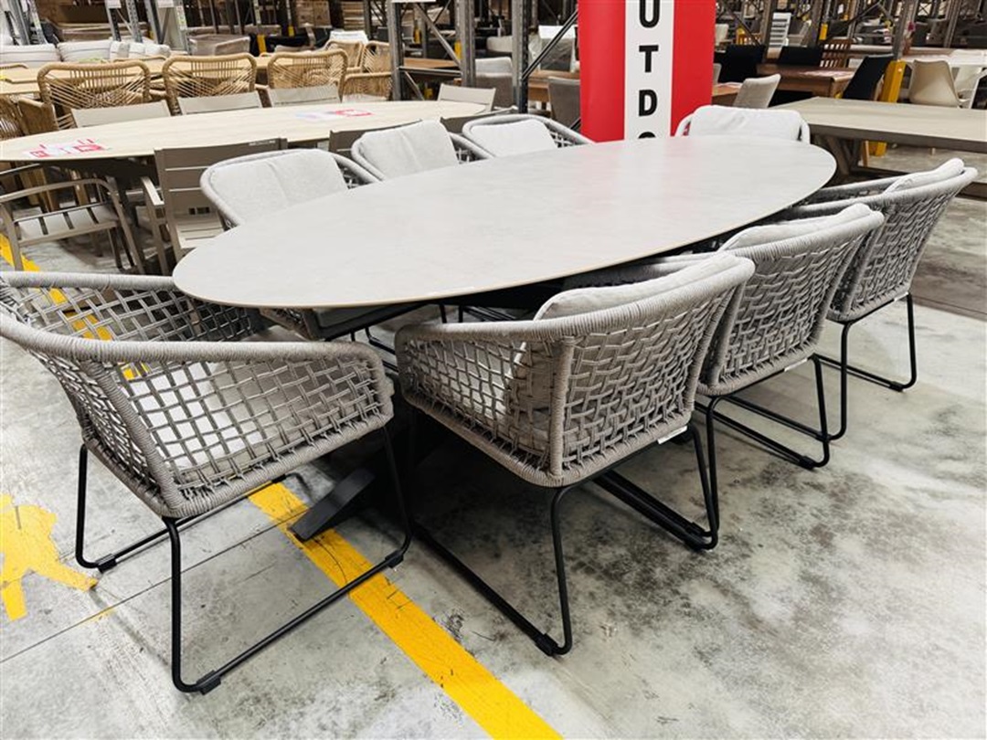 The Sand & Cream Outdoor Rope Dining Chairs feature a modern woven rope design combined with comfortable seating for relaxed outdoor dining. Finished in soft sand and cream tones, they add a light, coastal feel while remaining durable for outdoor use.