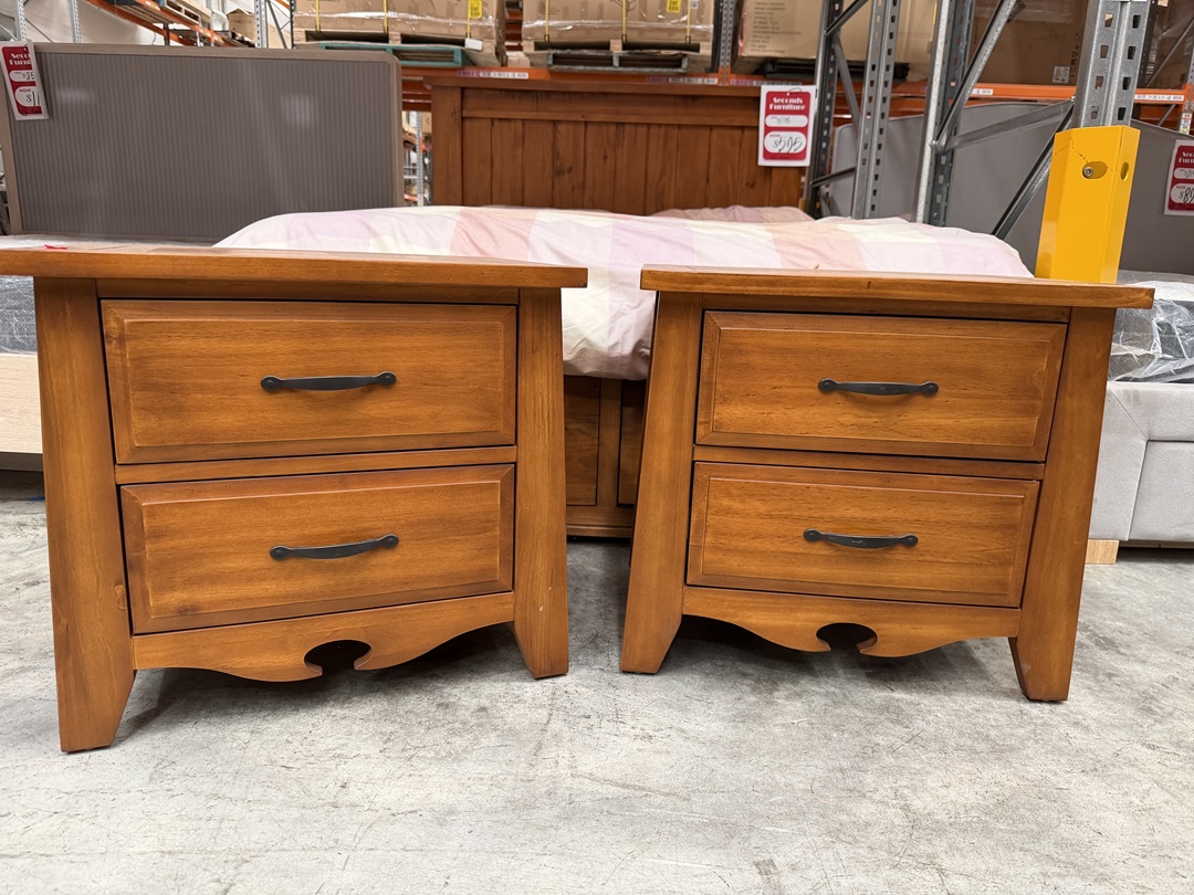 The Teak Timber 2 Drawer Bedside with Metal Handles is crafted from solid teak timber, offering warm natural tones and durable construction, with smooth-glide drawers and sleek metal handles for everyday convenience.