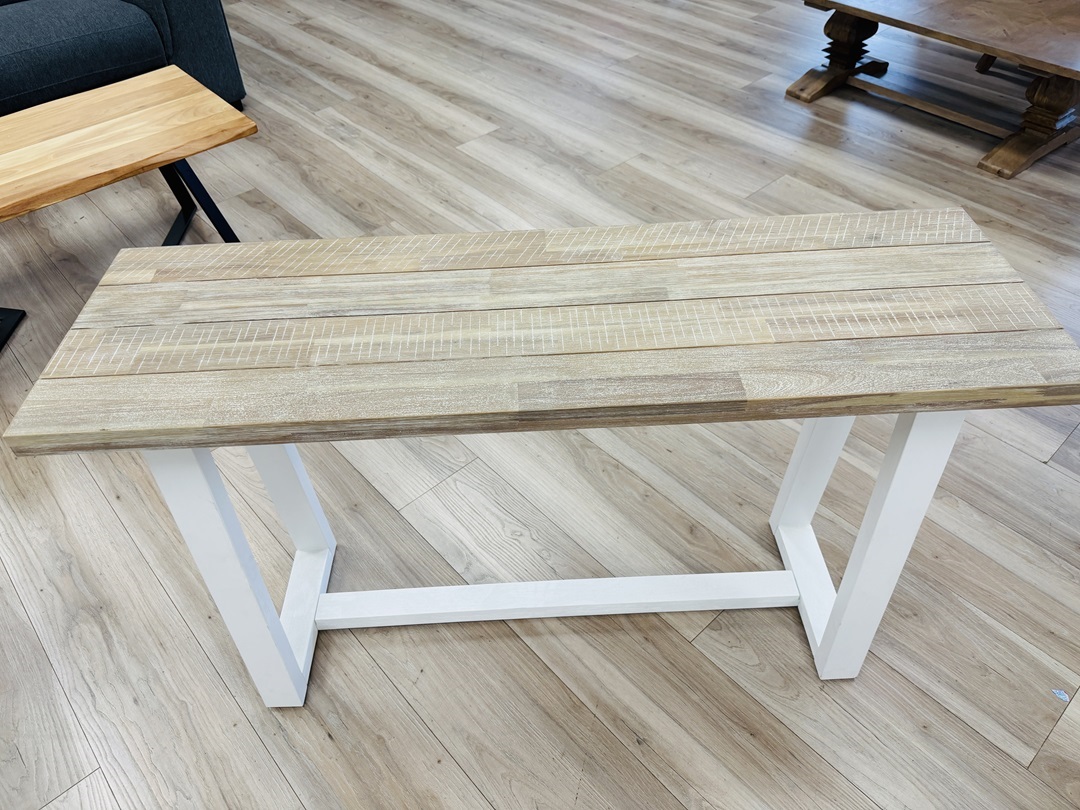 Stylish and functional, this hall table features a contemporary two-toned timber finish. Ideal for entryways or hallways, offering display space while enhancing your home’s interior style.
