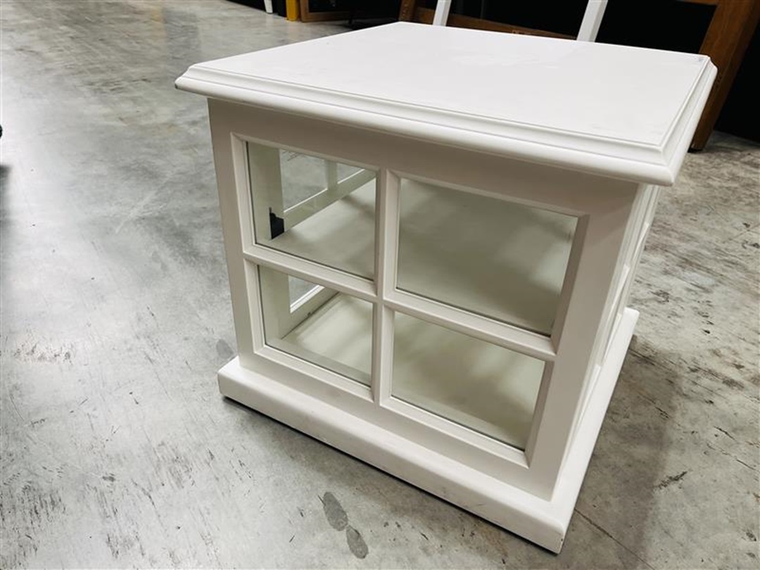 Compact yet elegant, this display cabinet features a glass front and white timber frame. Ideal for showcasing décor, collectibles, or fine crockery in small spaces.